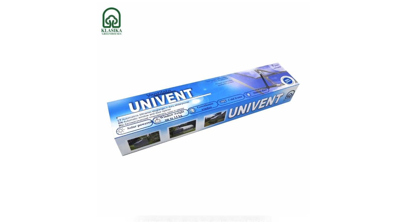 Univent – automatinis stoglangio/durų atidarytuvas, kuris veikia sušilus temperatūrai nuo 17 laipsnių šiltnamyje.