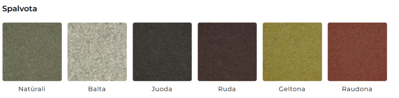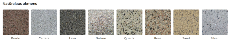 Produktą siūlome spalvotą, daugiaspalvį, natūralaus akmens faktūros produktą. Produktas negali būti sendinamas. Gali būti dengiamas TCP.