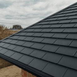 „Kuga“ – tai unikalaus dizaino modulinės metalinės čerpės, kurios ne tik užtikrina nesenstančią stogo išvaizdą, bet ir dėl vietinės ventiliacijos skatina stogo dangos džiūvimą.