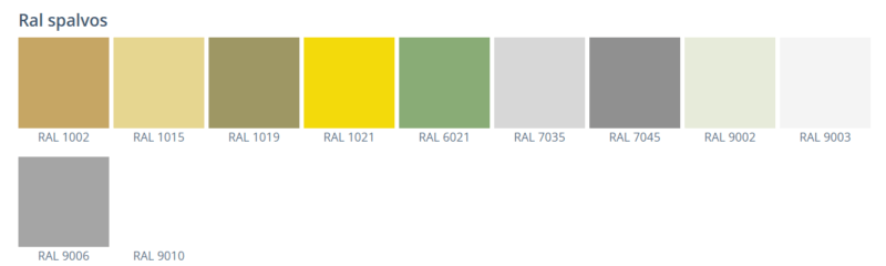 Skardos padengimas: Poliesteris (PE), Polivinildenfl uoridas (PVDF), food safe laminate ir kt.